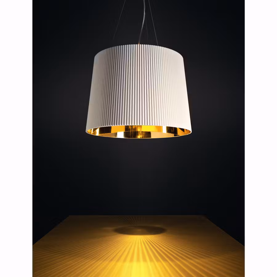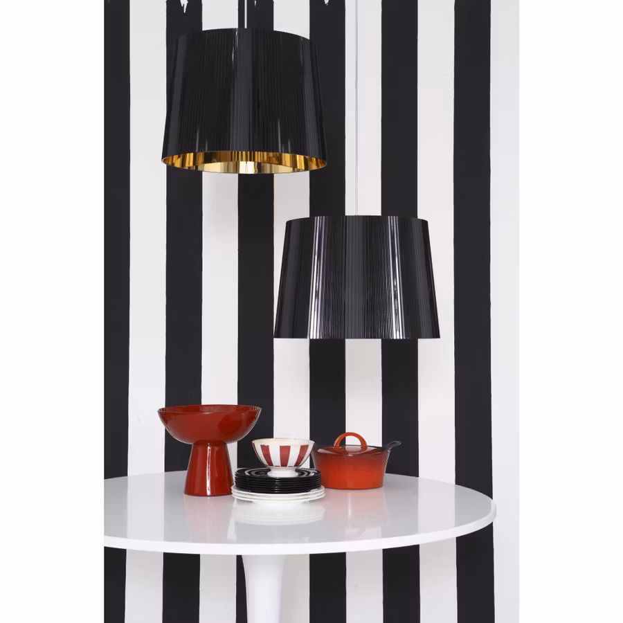 Gé di Kartell è una lampada a sospensione moderna che conferisce un tocco di lusso all’ambiente in cui viene collocata. La lampada è disponibile in due diverse versioni. Una è realizzata in plastica trasparente ed è disponibile in colori tenui, come cristallo, azzurro e rosa. L’altra versione, più audace, è disponibile nei colori bianco, cromo e nero/oro. Il cavo è regolabile da 45 a 230 cm.