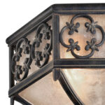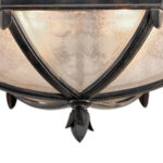 Lampada da esterno a filo in alluminio con design stilizzato a quadrifoglio presenta una finitura in ferro battuto Marbella e un sottile vetro testurizzato iridescente.
